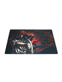 This mat is a SleeveChief own product. The surface is made of fabric and the base is made of rubber. The size corresponds to classic Yugioh mats.