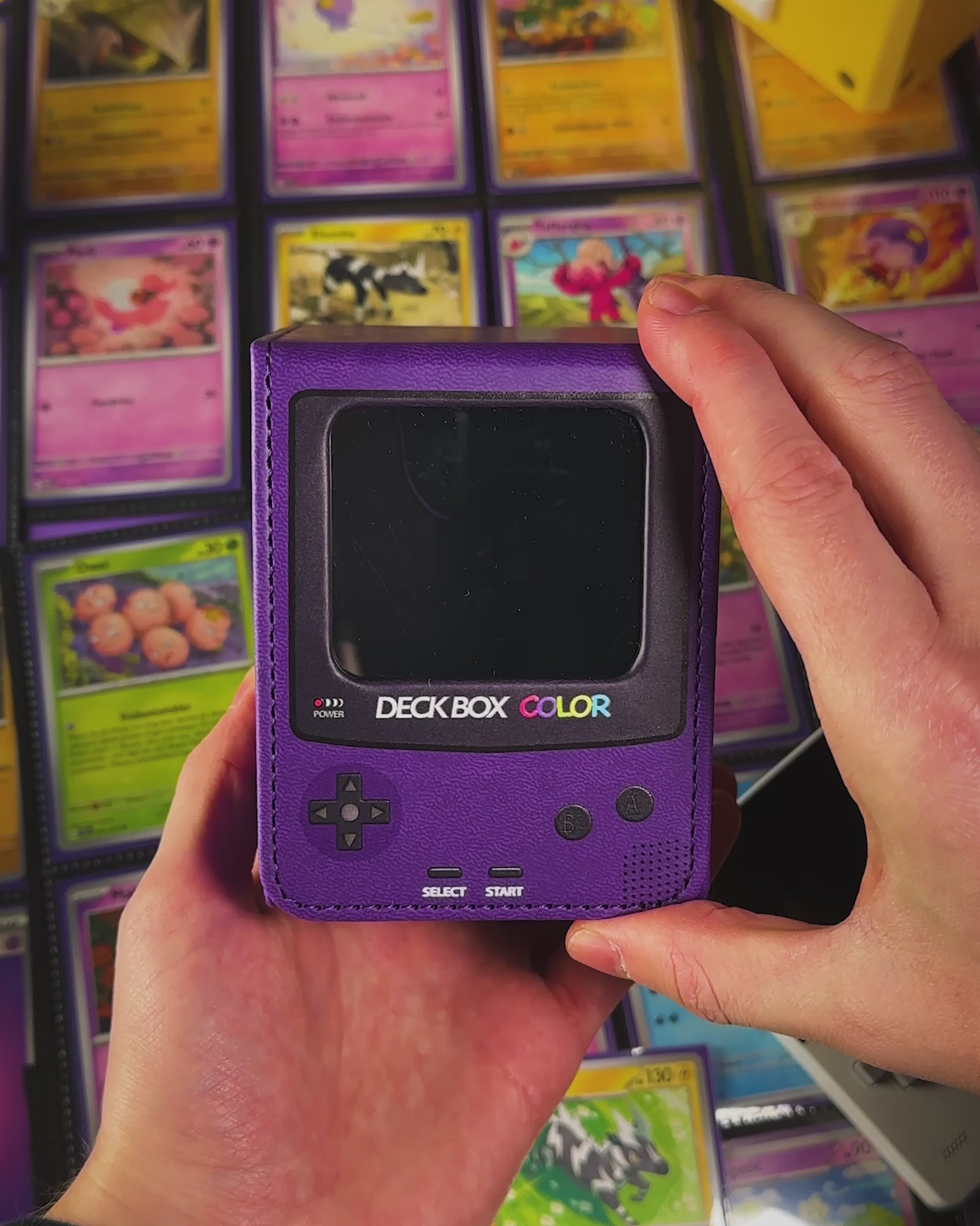 ¡Esta es la DECKBOX COLOR! Tiene una Pantalla transparente en el Frontal, Espacio para más de 100 Cartas con Funda, un elevado Diseño 3D y ¡Piel Premium!