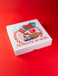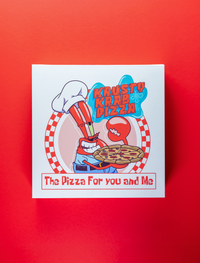 The Design features the most wanted Pizza of ALL TIME! Delivered by a Rock and a special Song! The Outside has a stunning Logo and the Inside might be the funniest Picture we have ever created! The Pizza for You and Meeeee!