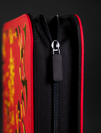 Toploader Binder | Fiery Red Premium Textured Leather | Ultra Shiny Golden Foil | Premium Quality, Premium PU Leather | Double-Sided Pages | 9-Pocket | 360 Pockets, Zipper Closure, Water-Resistant | Compatible with Pokemon, Magic The Gathering, Sports Cards, Yu-Gi-Oh and More