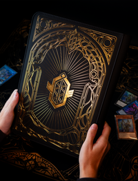 Shiny Golden Foil Artwork on the Front and Back | 360 Pockets, Zipper Closure, Water-Resistant | Compatible with Yu-Gi-Oh, One Piece Pokemon, Magic The Gathering, Sports Cards, and More | Premium PU Leather & Double-Sided Pages