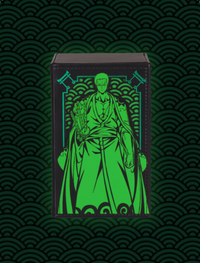 This Deckbox has a 2 layered Front Design and holo elements around it! The Upper Level which is the Pirate Hunter and a Lower Level which is the Japanese Wave!