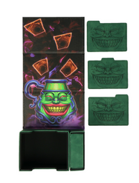The dice tray is attached to the box with 6 pairs of extremely strong magnets and can be completely removed.