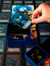 Holds 120 cards with standard sleeves or smaller formats and 100 cards with double sleeves. Made for Yugioh, One Piece, Magic and more!