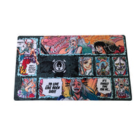 The surface is made of fabric and the base is made of rubber. The size corresponds to classic One Piece mats.